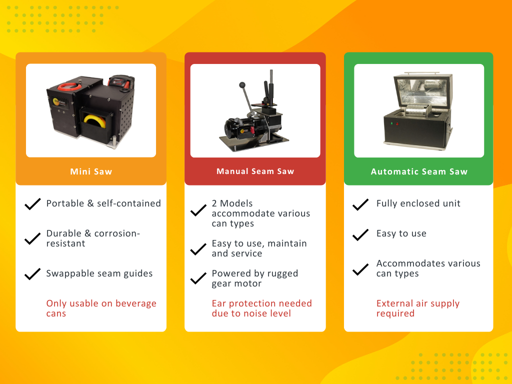 >> If you need to bring the saw to the can rather than the can to the saw, the Mini Saw is a great solution for your operation. <<
